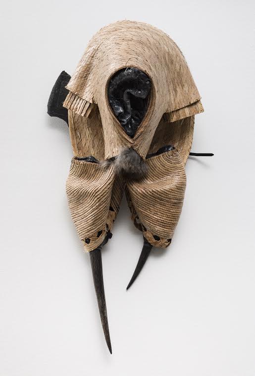Straw hat sombrero, three Gemsbok horn tips, black sweatpants, rabbit fur pelt, zip tie, pigmented dragon skin silicone.